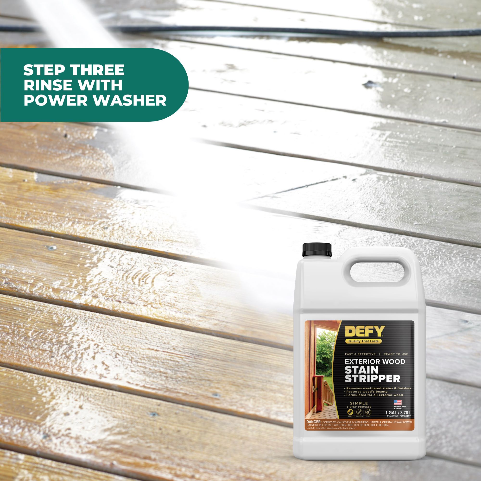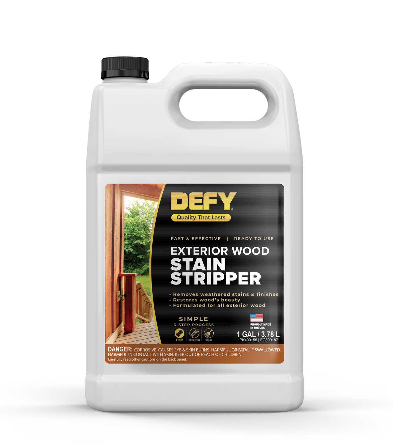 Defy Exterior Wood Stripper is a biodegradable, easy to use deck stain remover that will quickly remove stain wood finishes to restore the natural beauty of wood surfaces. Stains and varnishes are removed along with collected dirt, mold, mildew and mill glaze.