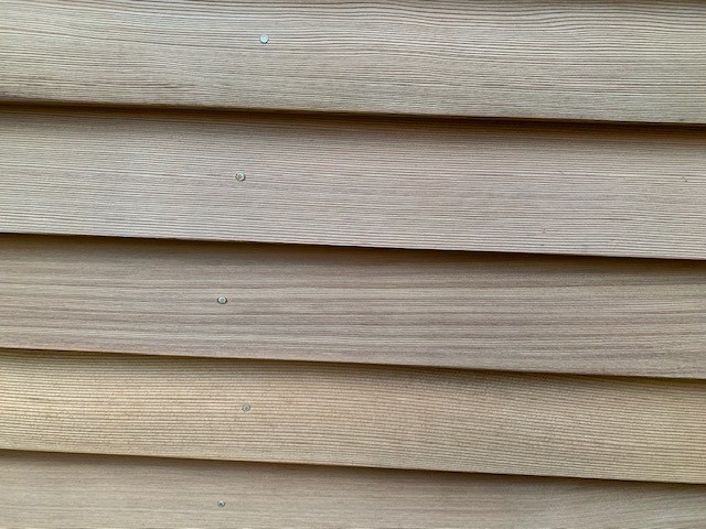Most of the clapboards have a corduroy texture with relief 1/64th inch, more or less. A scattered few clapboards have coarser relief.