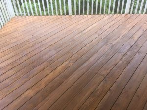 Before staining with Defy Stain the wood needs to be dry. If it has gotten wet due to being cleaned or by rain it is best to allow the wood to dry for a minimum of 24 hours before staining. This wait time can vary depending on the wood’s age, porosity, and sun exposure.